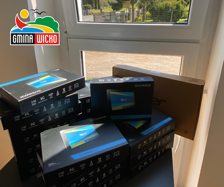 W ramach dofinansowania zostało zakupione 51 tabletów i 5 laptopów, które zostały przekazane do Szkół Podstawowych z terenu Gminy Wicko. Przekazanie sprzętu do szkół nastąpiło 6 maja 2020 r.