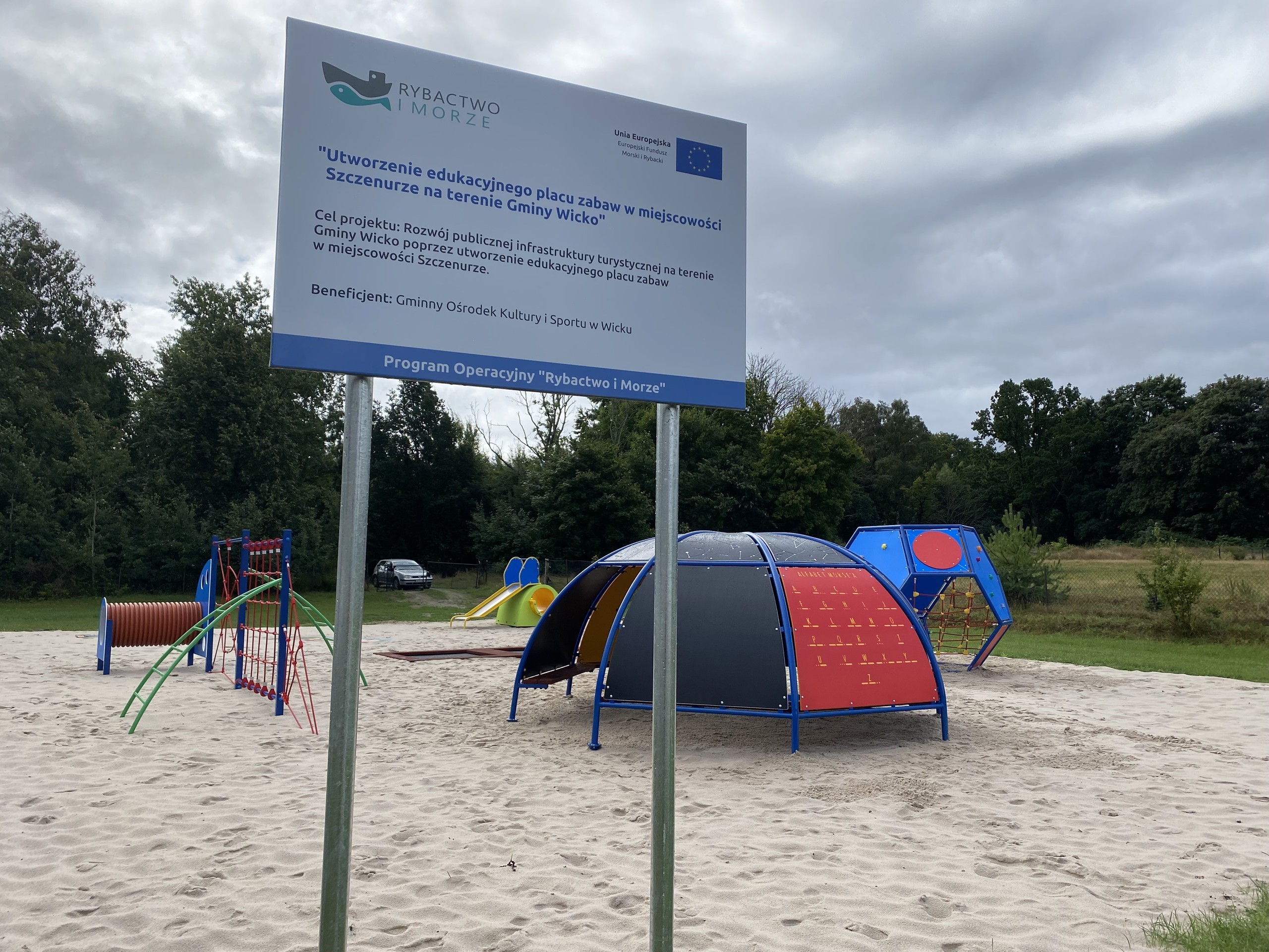 Projekt pn. „ Utworzenie edukacyjnego placu zabaw w miejscowości Szczenurze na terenie Gminy Wicko” współfinansowany ze środków Unii Europejskiej w ramach Europejskiego Funduszu Morskiego i Rybackiego Program operacyjny “Rybactwo i Morze” na lata 2014-2020