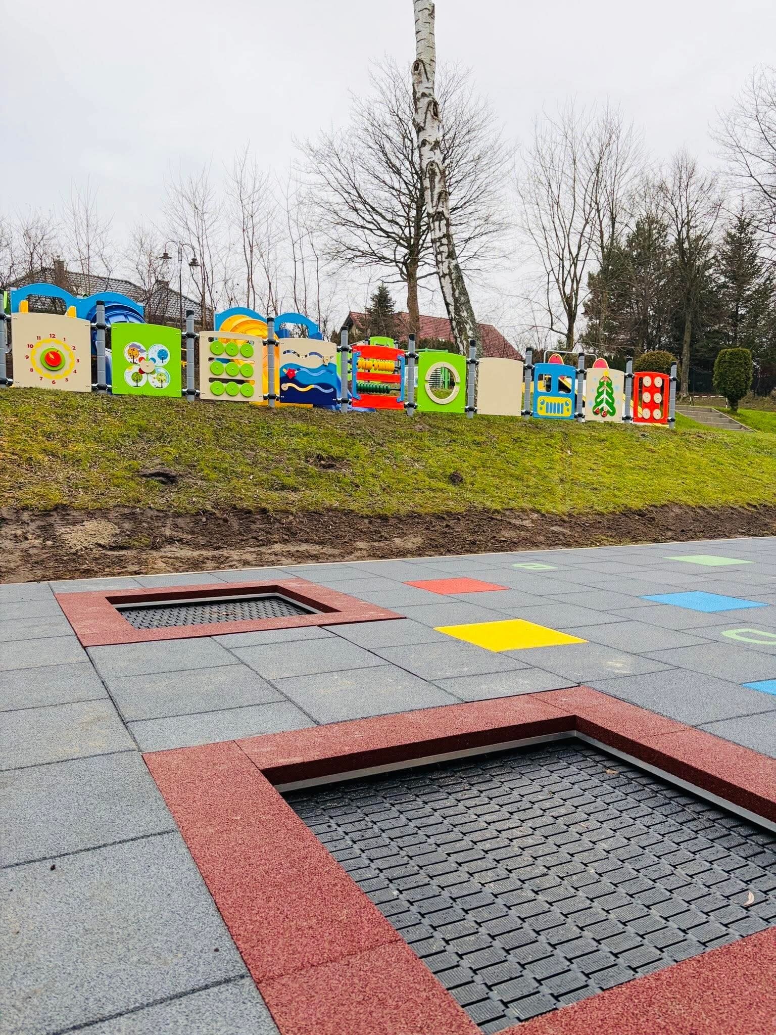 - wykonanie nawierzchni bezpiecznej z grami integracyjnymi oraz dwiema wbudowanymi trampolinami.