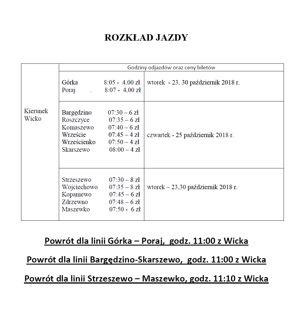 Poniżej zamieszczamy aktualny rozkład jazdy. Zmiany obowiązują od 23 października 2018 r.